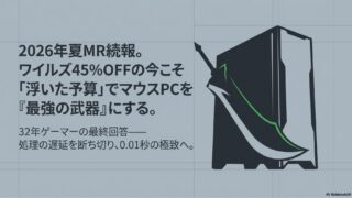 TOP 2025.02.122026.03.31 まずはこちらの記事から!PC選びのバイブル NEWS最新記事はこちら 【バイオ レクイエム】ネタバレを知る前に。ゲームが「重い」という噂で失われる感動体験 2026.04.032026.04.08 『仁王3』が難しすぎるのは加齢のせい?30代が「反射神経」の衰えを疑う前に変えるべき1つの環境 2026.03.302026.04.08 『仁王3』が「難しすぎる」のは、本当にあなたの腕のせいか?——32年ゲーマーが教える、理不尽を物理で解決する話 2026.02.192026.04.08 2026年夏MR続報!ワイルズ45%OFFの今こそ「浮いた予算」でマウスPCを『最強の武器』にする。32年ゲーマーの最終回答 2026.02.172026.04.10 【モンハンワイルズ】歴戦王★10を120fpsで制す!1周年アプデ内容と夏の大型拡張への備え 2026.02.162026.04.08 新着記事の一覧はこちら 人気ゲームタイトル <全タイトルすべて見る> アクション モンスターハンターワイルズ 三國無双Origine グランドセフトオートV Rise of the Ronin(ライズオブローニン) FPS フォートナイト APEX ホラー Dead by Daylight 人気記事ランキングよく読まれている記事はこちら 【2026年最新】ライズオブローニンPC版・画質設定完全ガイド|MODを楽しむための本当に必要なスペック 2025.03.212026.04.08 『仁王3』が「難しすぎる」のは、あなたの腕のせいじゃない——32年ゲーマーが教える、神ゲーを100%引き出す【PC設定・MOD・環境】の話 2026.02.142026.04.08 【2026年1月最新】三國無双 Origins推奨スペックの真実|DLC『夢幻の四英傑』を最高環境で遊ぶ3つの選択肢 2025.02.122026.04.08 APEX LEGENDSはPCのほうが強くなれる?コンソール勢が知るべきメリットとおすすめPC! 2025.03.112026.02.02 ゲームの真髄はゲーミングPCにあり!コンソール機では味わえない圧倒的体験の世界へ 2025.02.262026.02.02 他のタイトルを見る プロフィール お問い合わせ 氏名 メールアドレス 題名 メッセージ本文 (任意)