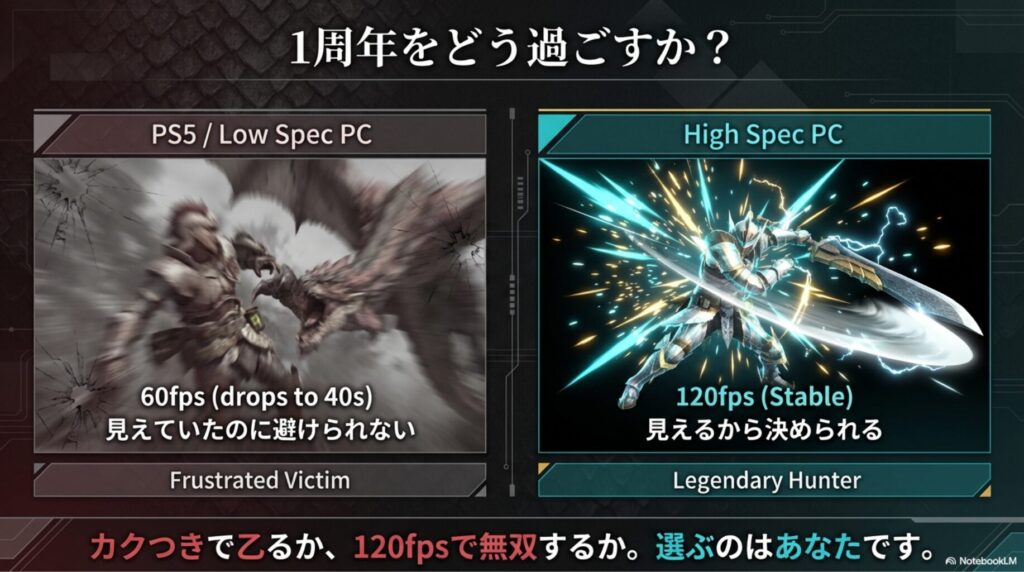 もし、あなたが今、PS5版や低スペックPCで「まあ、遊べてるし」と感じているなら——