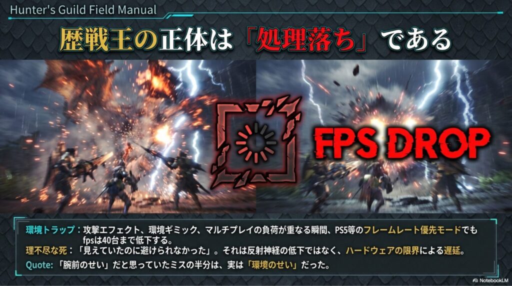 一撃乙の恐怖が支配する戦場で、ハードの処理落ちは「環境トラップ」です。