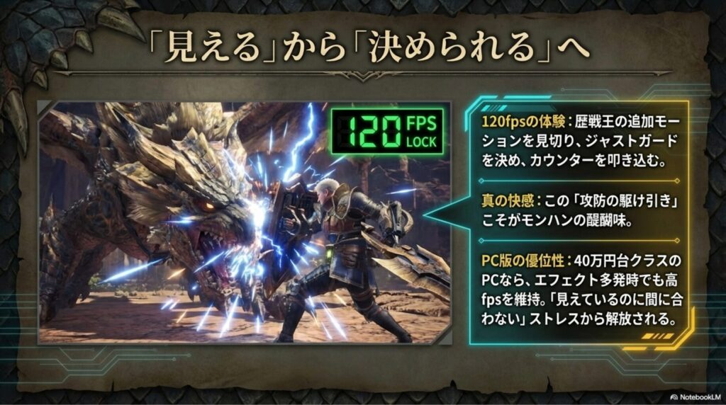 「カクつきで乙る歴戦王戦」と「120fps張り付きで無双する歴戦王戦」