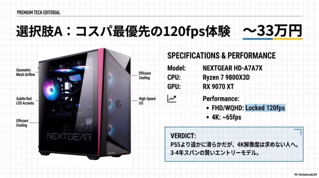 【33万円】NEXTGEAR HD-A7A7X|コスパ最優先の120fps体験