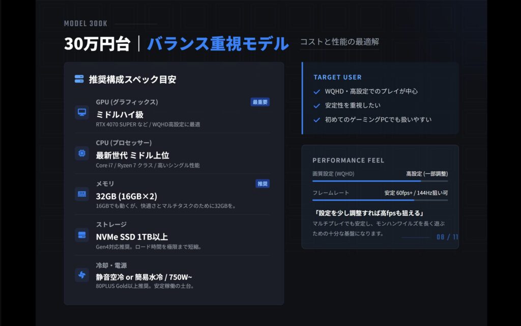 30万円台でも、モンハンワイルズを快適に遊ぶことは可能です。