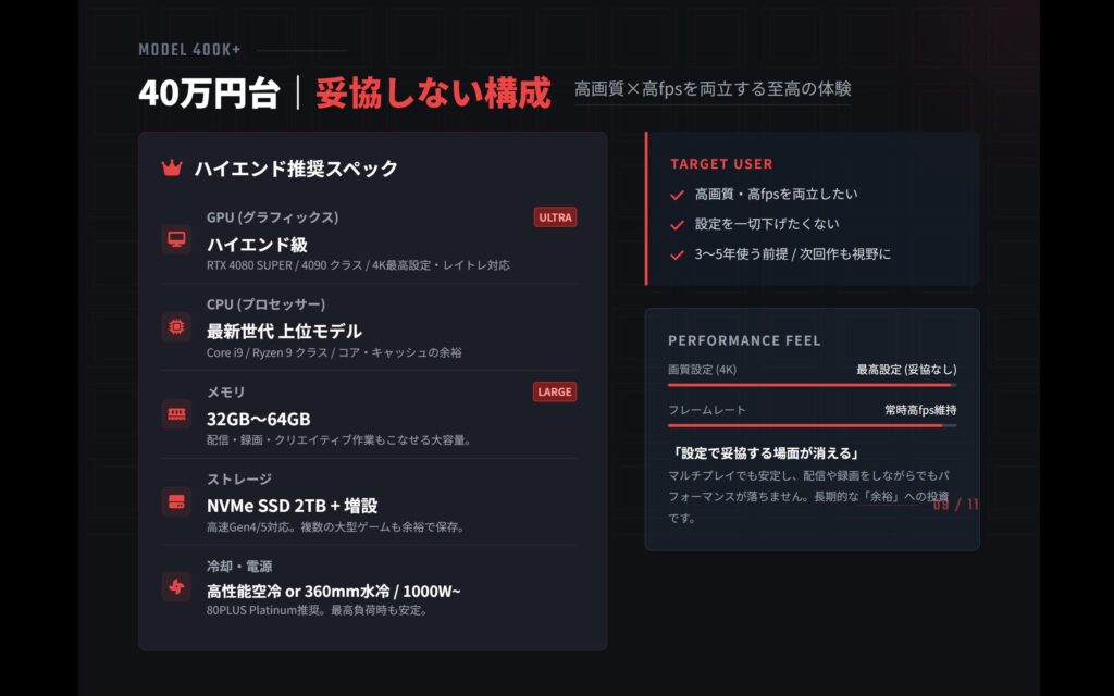配信や録画、他の重いゲームにも対応でき、長期的に見ても余裕のある選択です。