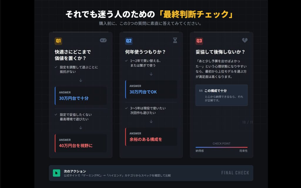 初めてのゲーミングPCなら、なおさら慎重になりますよね。