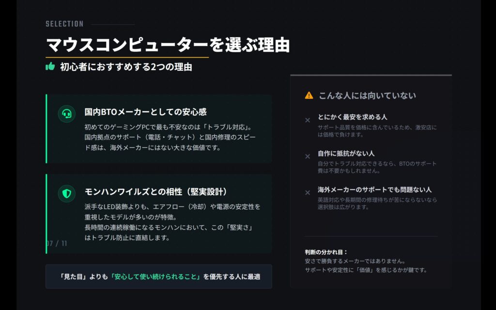マウスコンピューターのゲーミングPCを選択肢に入れる理由