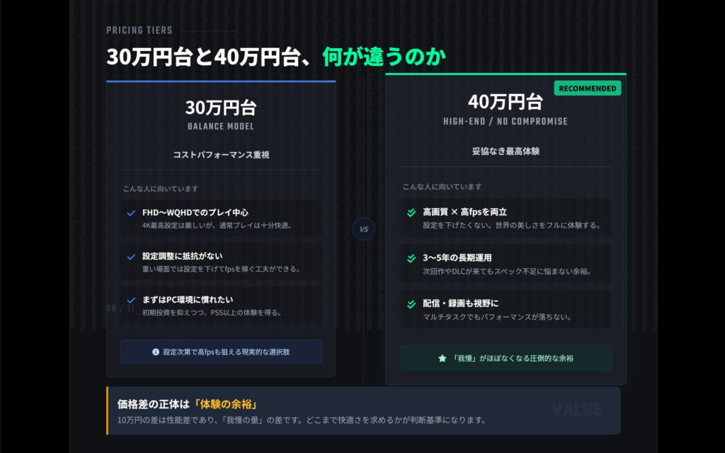 30万円台と40万円台のゲーミングPC、何が違うのか