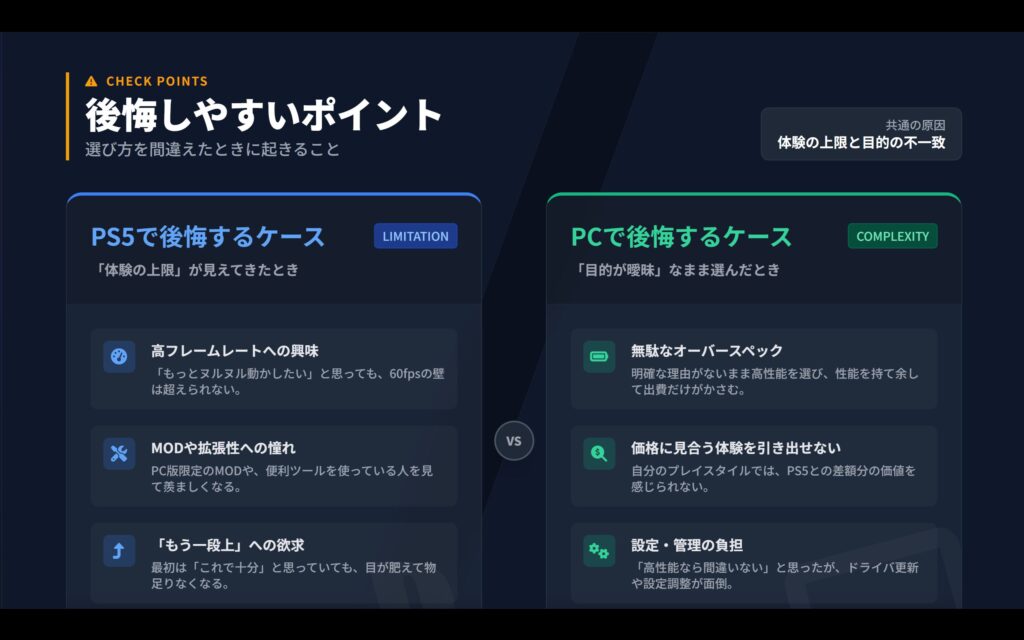 「PS5で十分」と判断した時点では問題なくても、 遊び続けるうちに 「もっと先がある」ことを知ってしまう可能性があります。