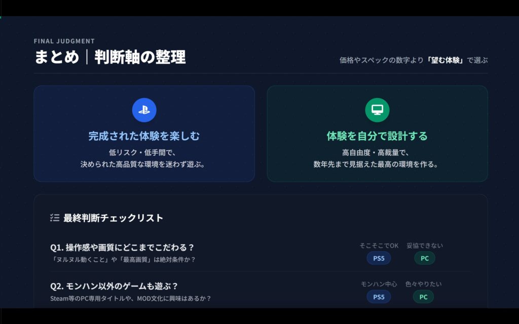 まとめ|PS5とPC、どちらが自分に向いているかの判断軸