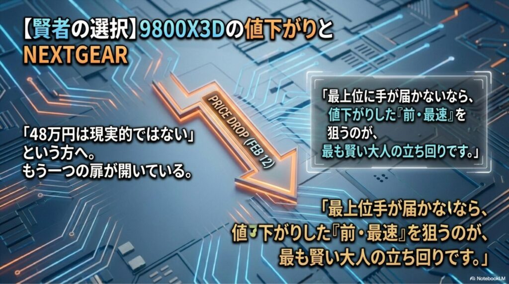 【賢者の選択】9800X3Dの値下がりとNEXTGEARのコスパ