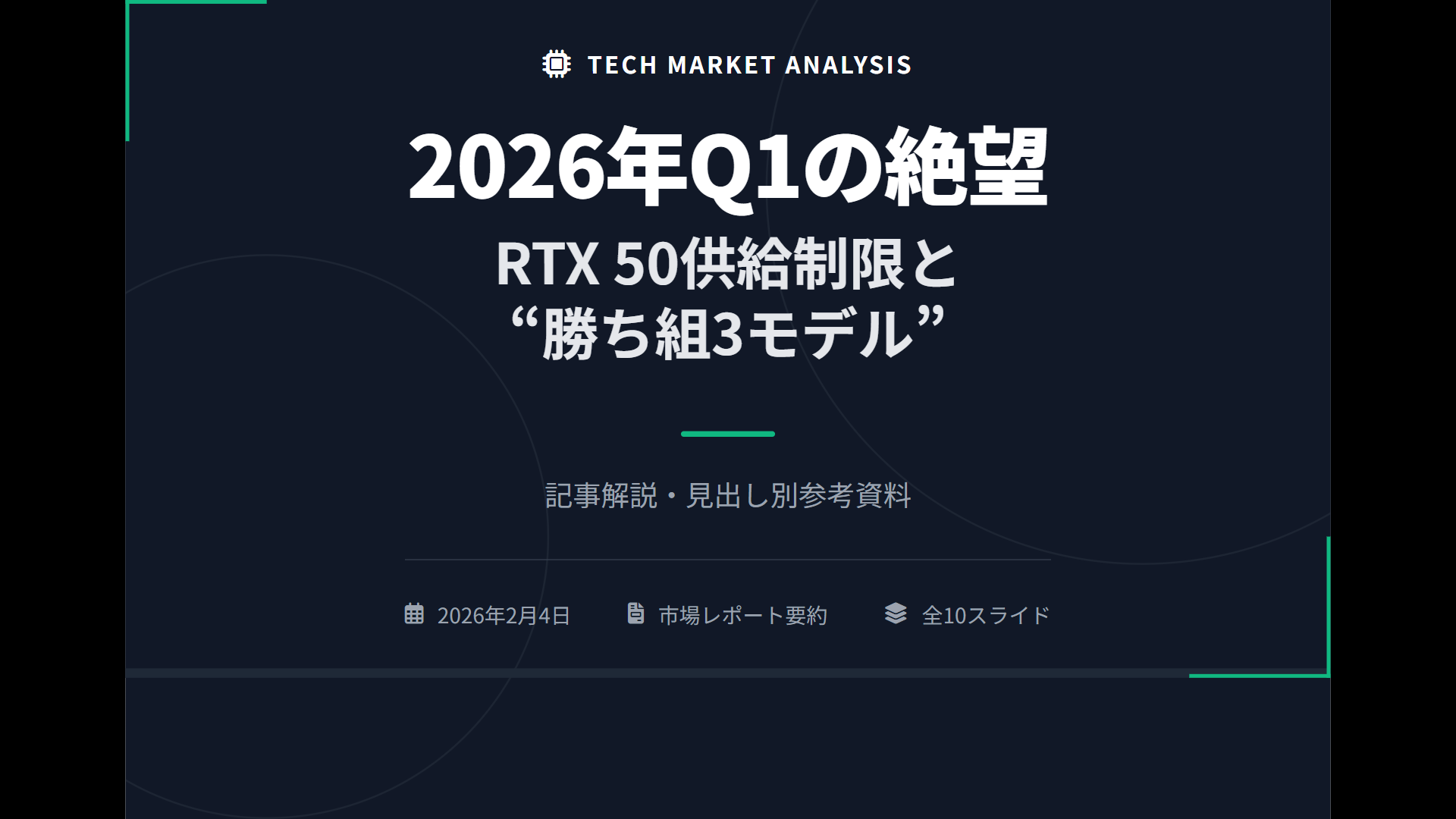 つまり、2026年2月現在、「手に入りやすいモデル」と「手に入りにくいモデル」の格差は、偶然ではなく、NVIDIAの意図的な戦略によって生み出されているのです。
