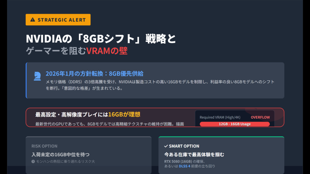 NVIDIAにとって、8GBモデルを大量生産する方が、利益率とリスクの両面で合理的なのです。