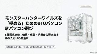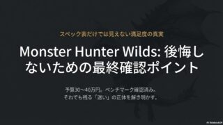 モンスターハンターワイルズ用ゲーミングPCで後悔しやすいポイントを体験ベースで整理。30〜40万円クラスで失敗しない判断軸と、購入前の最終チェックリストを解説します。