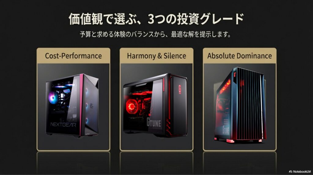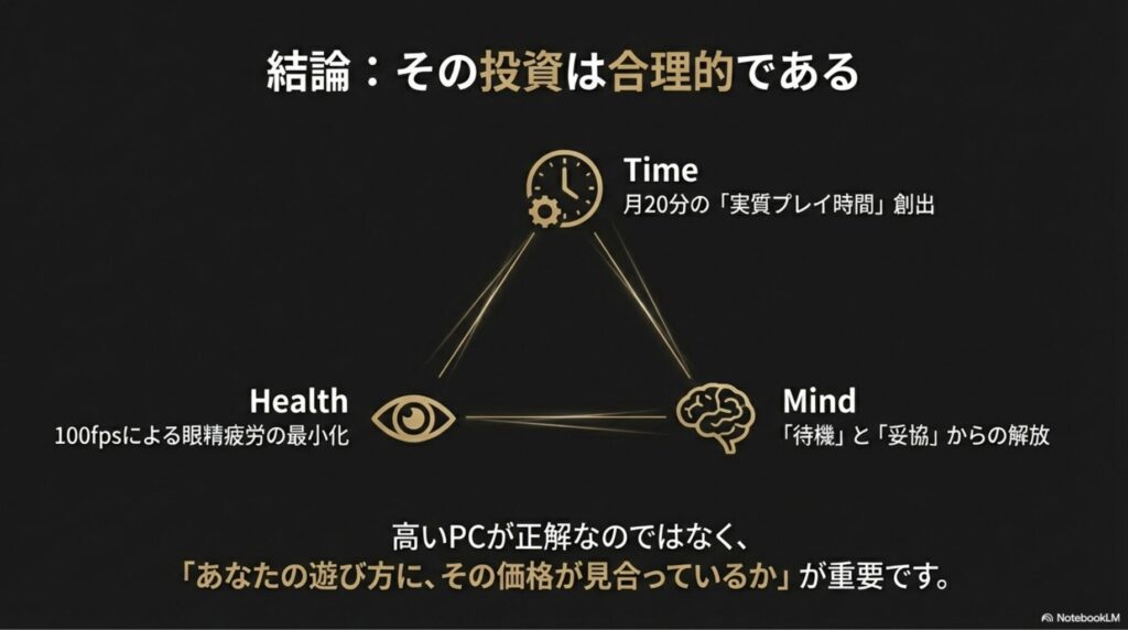 高いPCが正解なのではなく、『あなたの遊び方に、その価格が見合っているか』が重要です。
