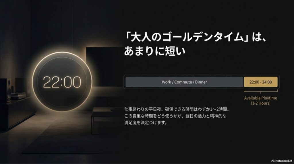 PCは、ゲームをプレイする「道具」ではなく、大人が限られた時間を最大限に活用するための「基地」です。