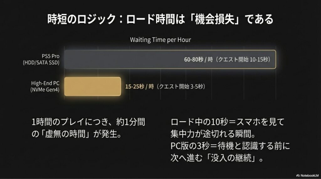 ロード時間の短縮は、単なる時短ではなく、家族が寝静まった後の貴重な1時間を、1秒も無駄にしないための武装といえます。