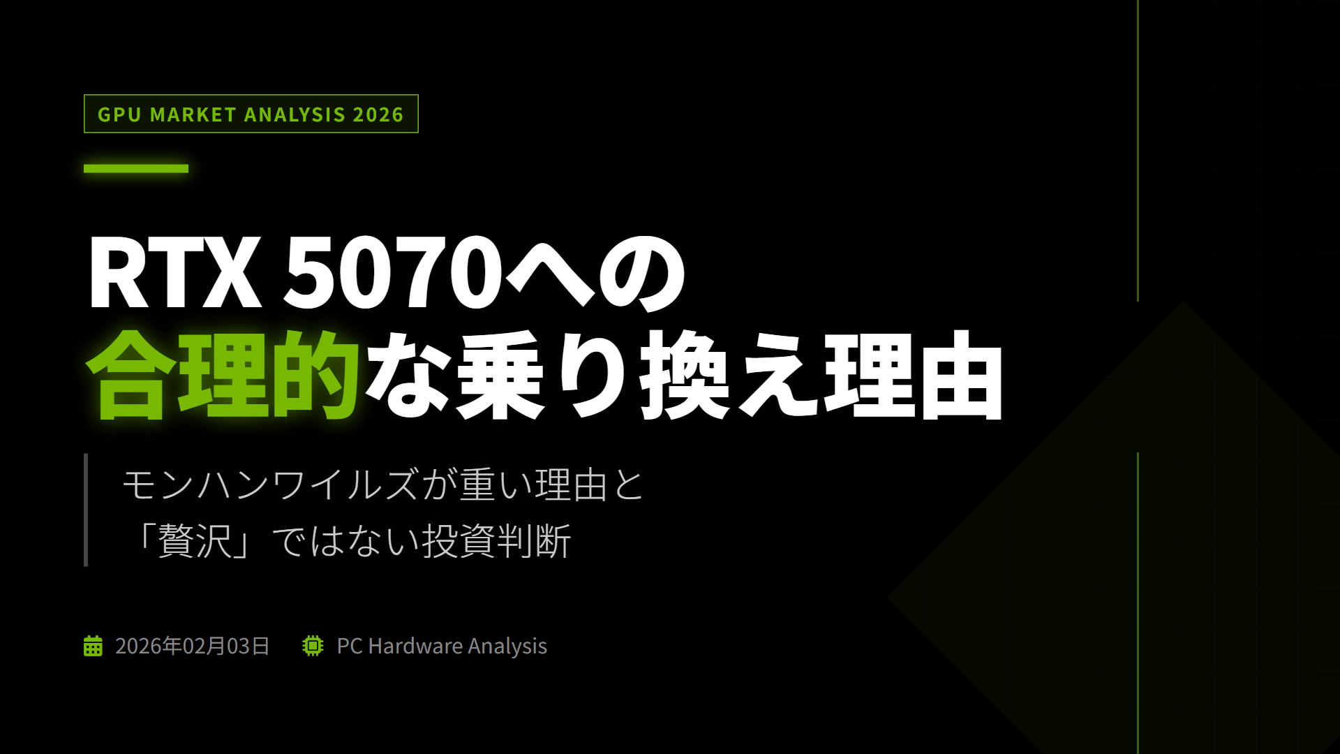本記事では、RTX 5070への乗り換えが単なる「性能アップ」ではなく、電気代、体験の質、そして資産価値という観点から見て、いかに合理的な選択であるかを3つの証拠とともに検証します。